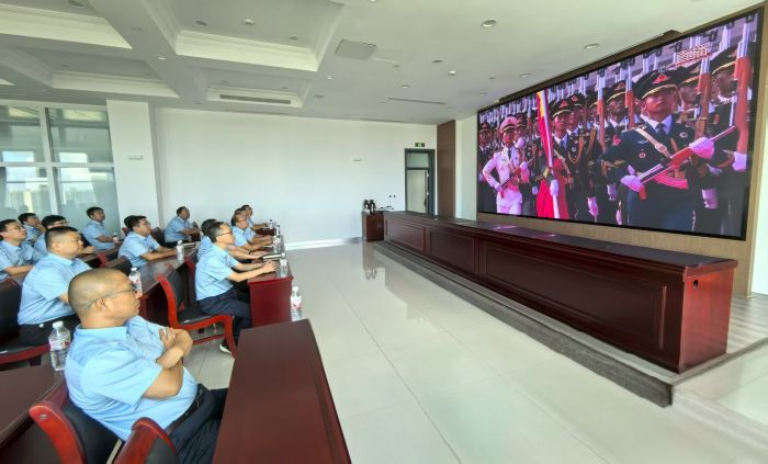 當(dāng)威武雄壯的受閱方隊邁著鏗鏘有力的步伐走過,當(dāng)各類現(xiàn)代化裝備依次亮相,當(dāng)戰(zhàn)機編隊劃破長空,強大的陣容、恢宏的氣勢,讓觀看直播的職工們心潮澎湃,會議室里不時響起陣陣驚呼聲。