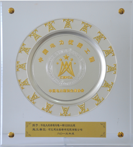 近日,我公司參與施工的華能大慶綠源風電一期192MW工程(新立、五棵樹風電場風機樁基礎(chǔ)施工)被中國電力建設(shè)企業(yè)協(xié)會評為2013年度“中國電力優(yōu)質(zhì)工程獎”。